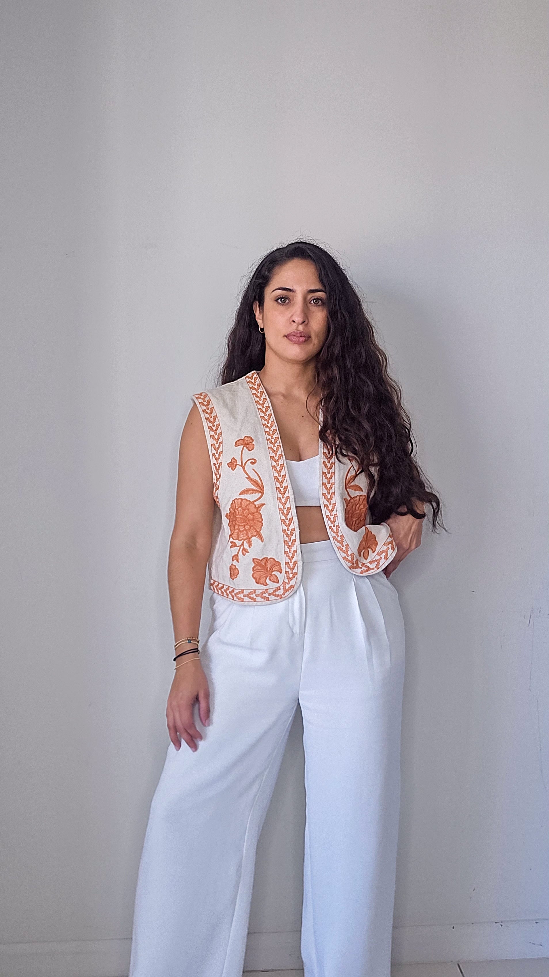 Embroidered denim vest